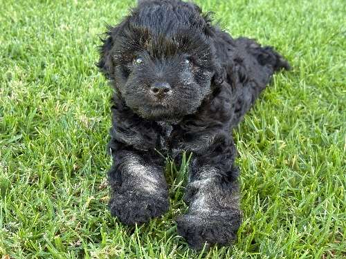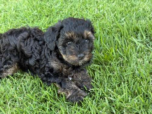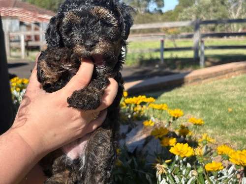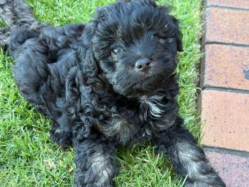 These puppies are the most adorable and loving you will ever meet. They are black and have patches of cream and brown from the mum (cavoodle)